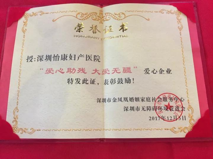 怡康获“爱心助残 大爱无疆”爱心企业荣誉证书